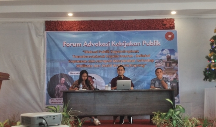 KUPANG, BN – Forum Advokasi Kebijakan Publik yang digelar oleh HIMAPRO IAP FISIP Undana di Restoran Suba Suka Kupang, Sabtu (6/12/2025), merilis hasil Survei Kepuasan Publik 2025, yang mengukur persepsi masyarakat terhadap kinerja Wali Kota dan Wakil Wali Kota Kupang, dr. Christian Widodo dan Serena Cosgrova Francis, pada tahun pertama masa jabatan.